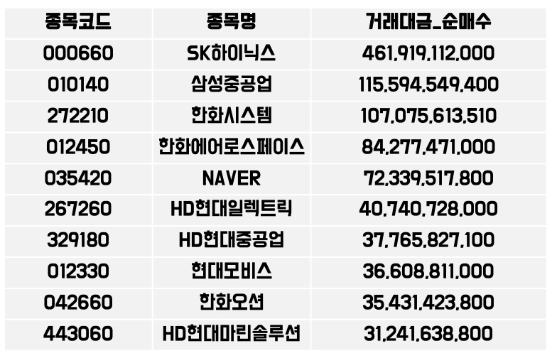 지난 한 주 외국인이 가장 많이 산 주식 코스피 기준 11월 2주차(11월 4일 ~ 8일)
