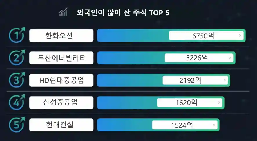 1위: 한화오션 (순매수: 6750억)