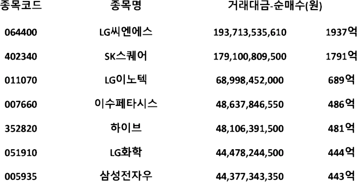 외국인이 가장 많이 산 주식 | 코스피 11월 1주