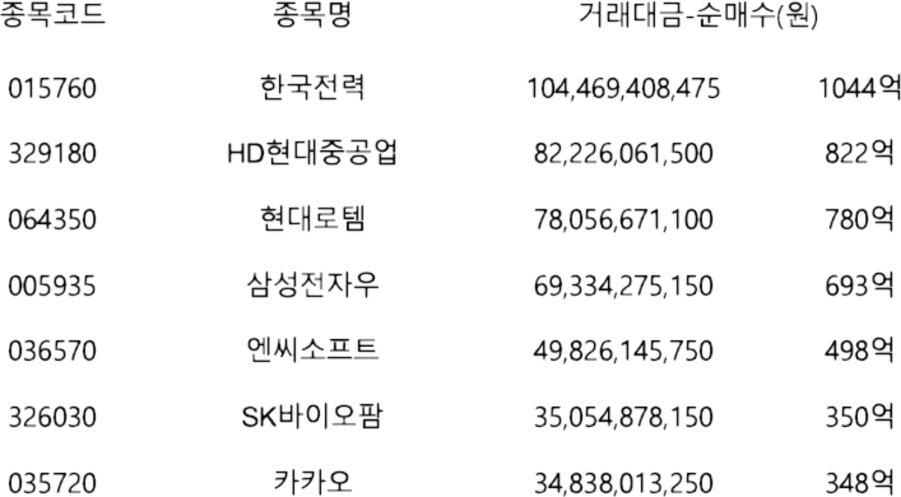 외국인이 가장 많이 산 주식 | 코스피 11월 마지막주